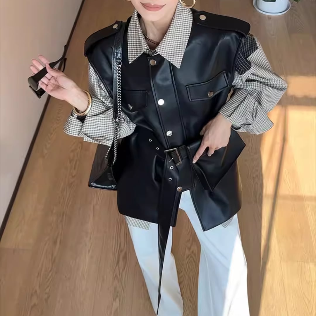 Fashionable and versatile slimming leather vest top (NC287)