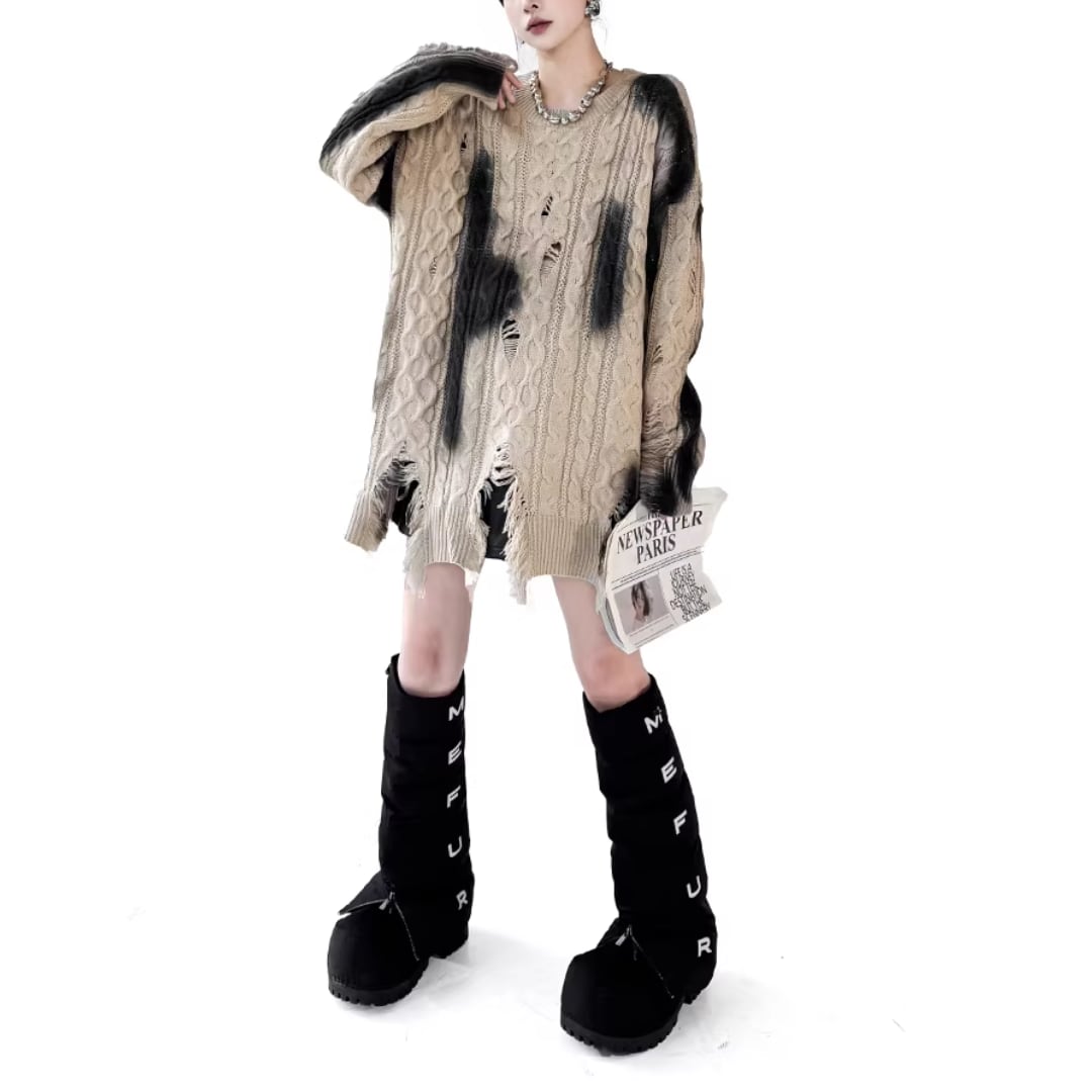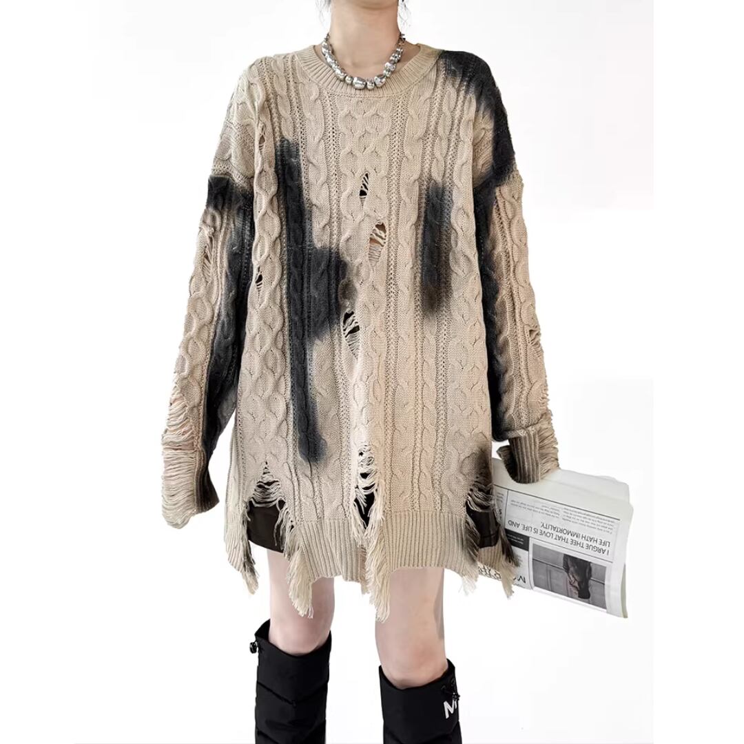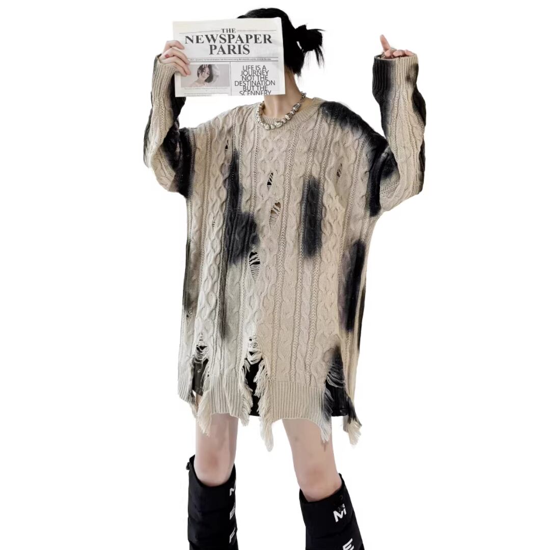 European-style inkjet printed distressed sweater (NC301)