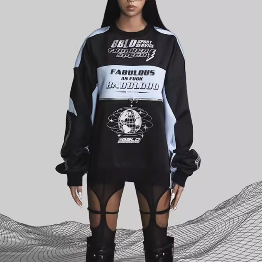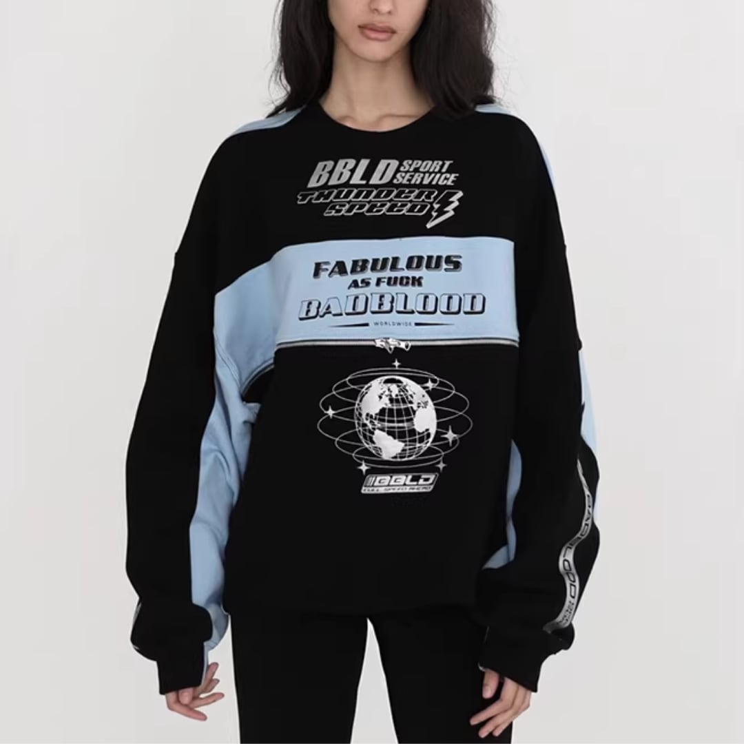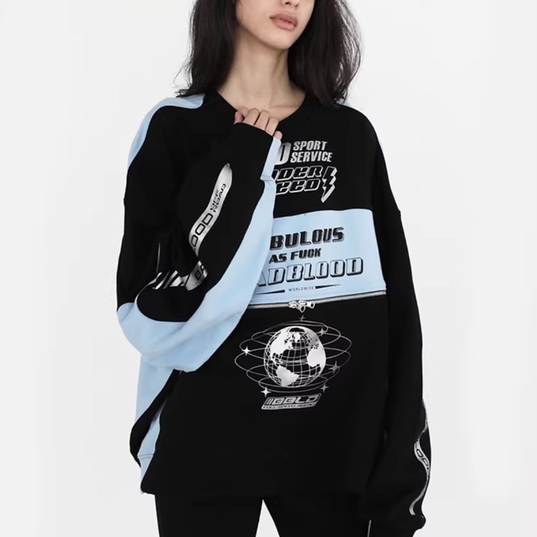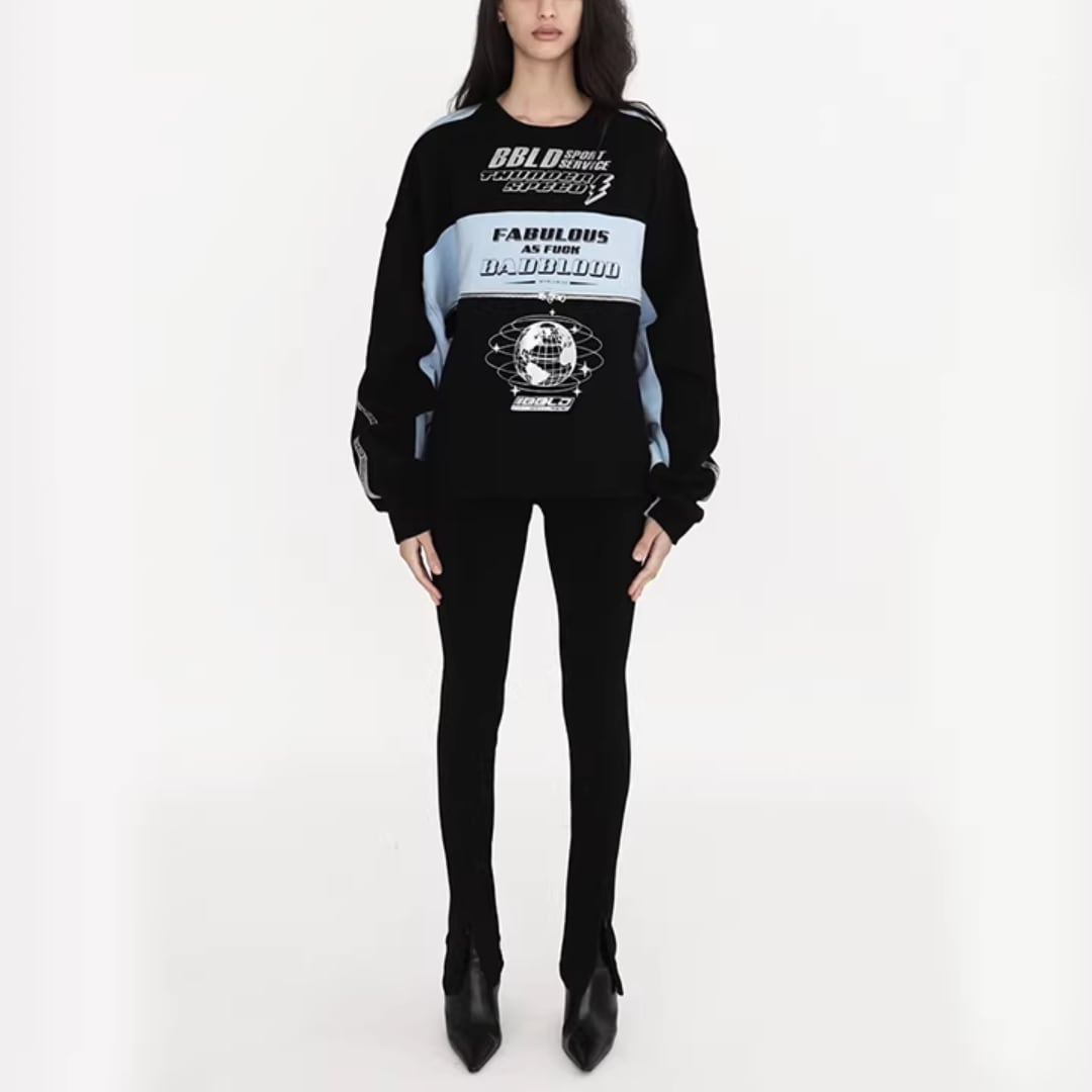 Unisex Color Block Letter Print Tops (NC368)